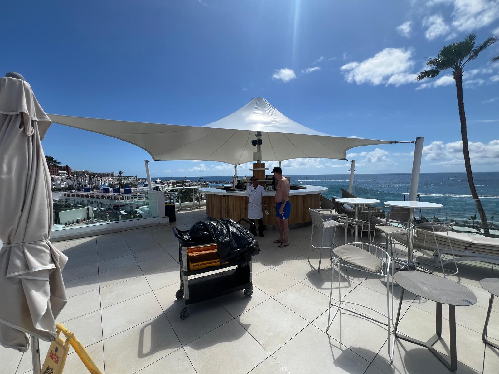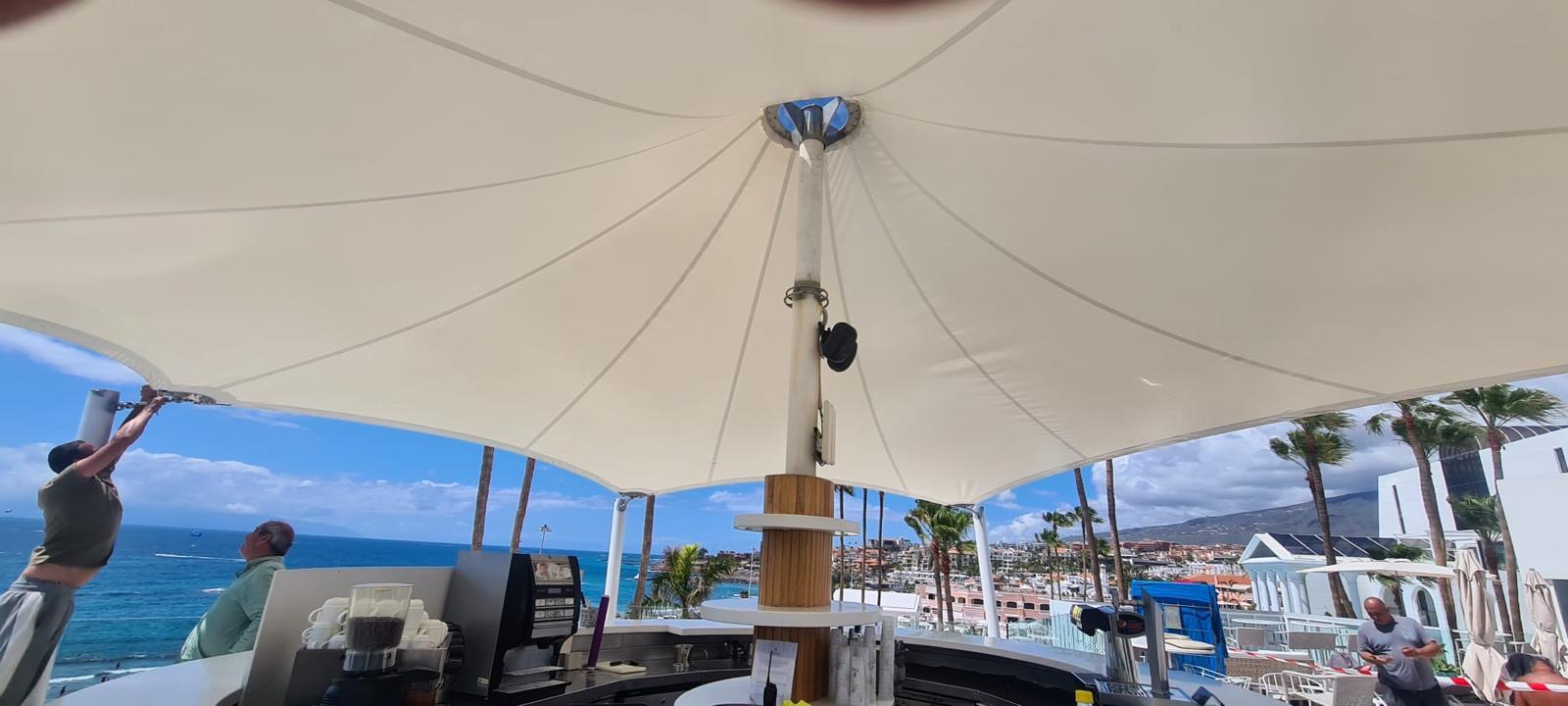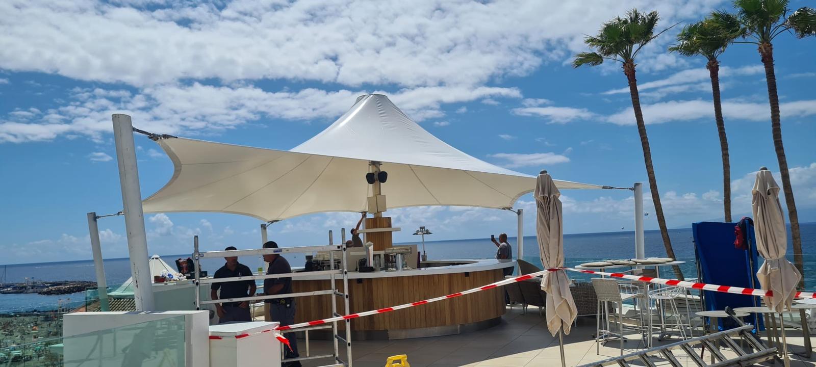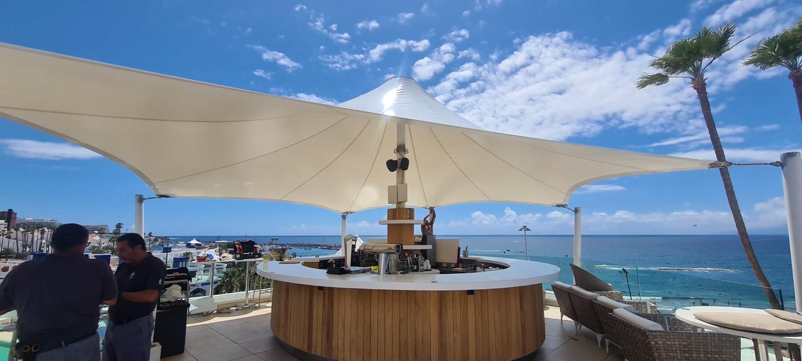 FABRICACION E INSTALACION DE CUPULA TEXTIL TENSADA, REALIZADA EN HOTEL GUAYARMINA PRINCESS ADEJE – TENERIFE EN BAR – TERRAZA PREMIUM.