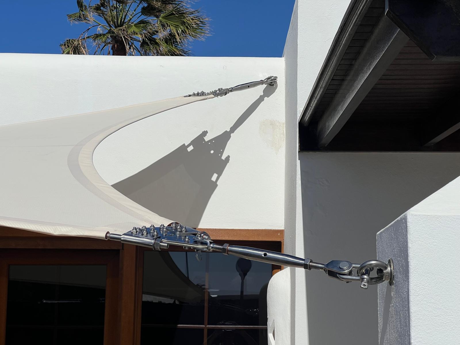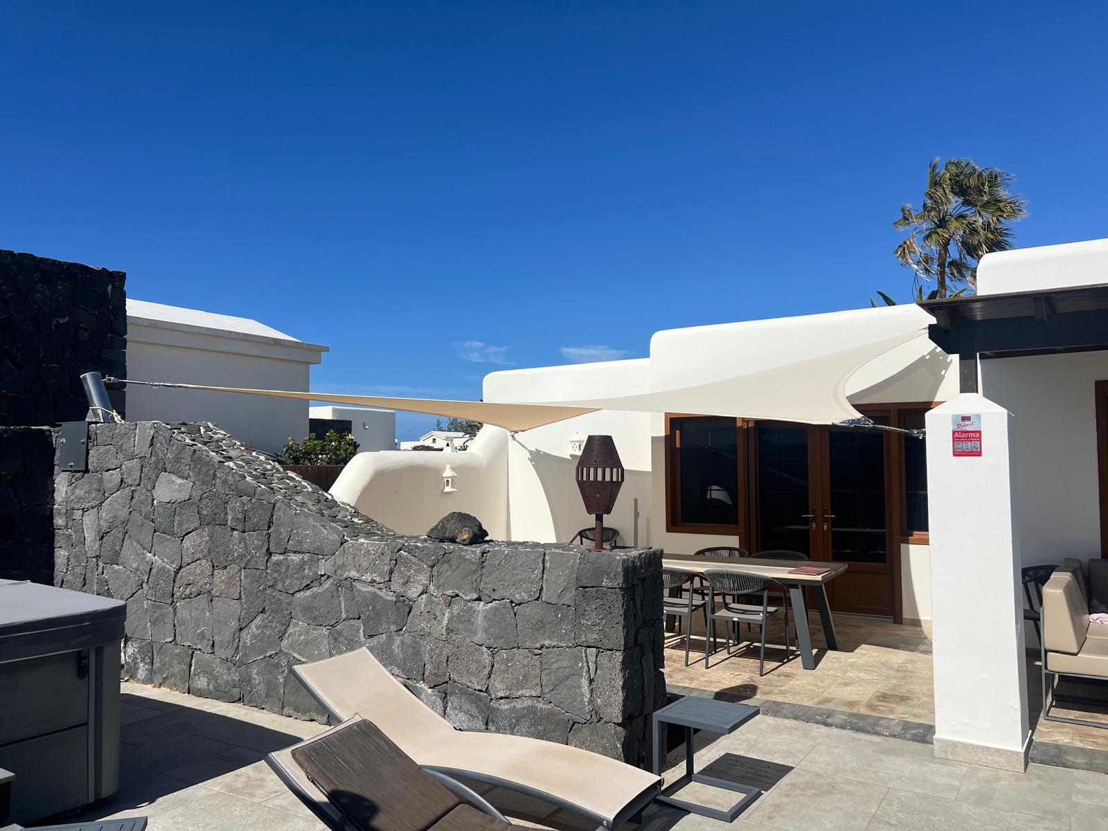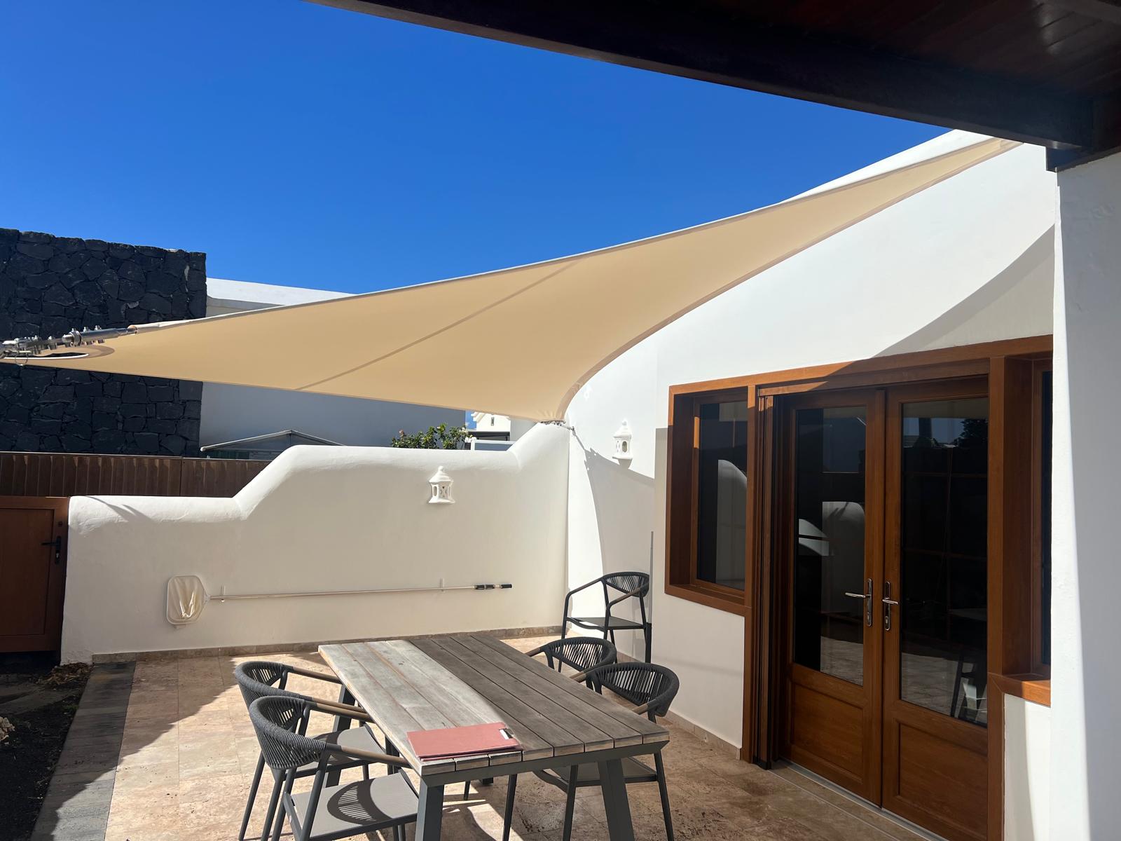 Proyecto de diseño e instalación de vela tensada en terraza privada de villa situada en Playa Blanca, Lanzarote.